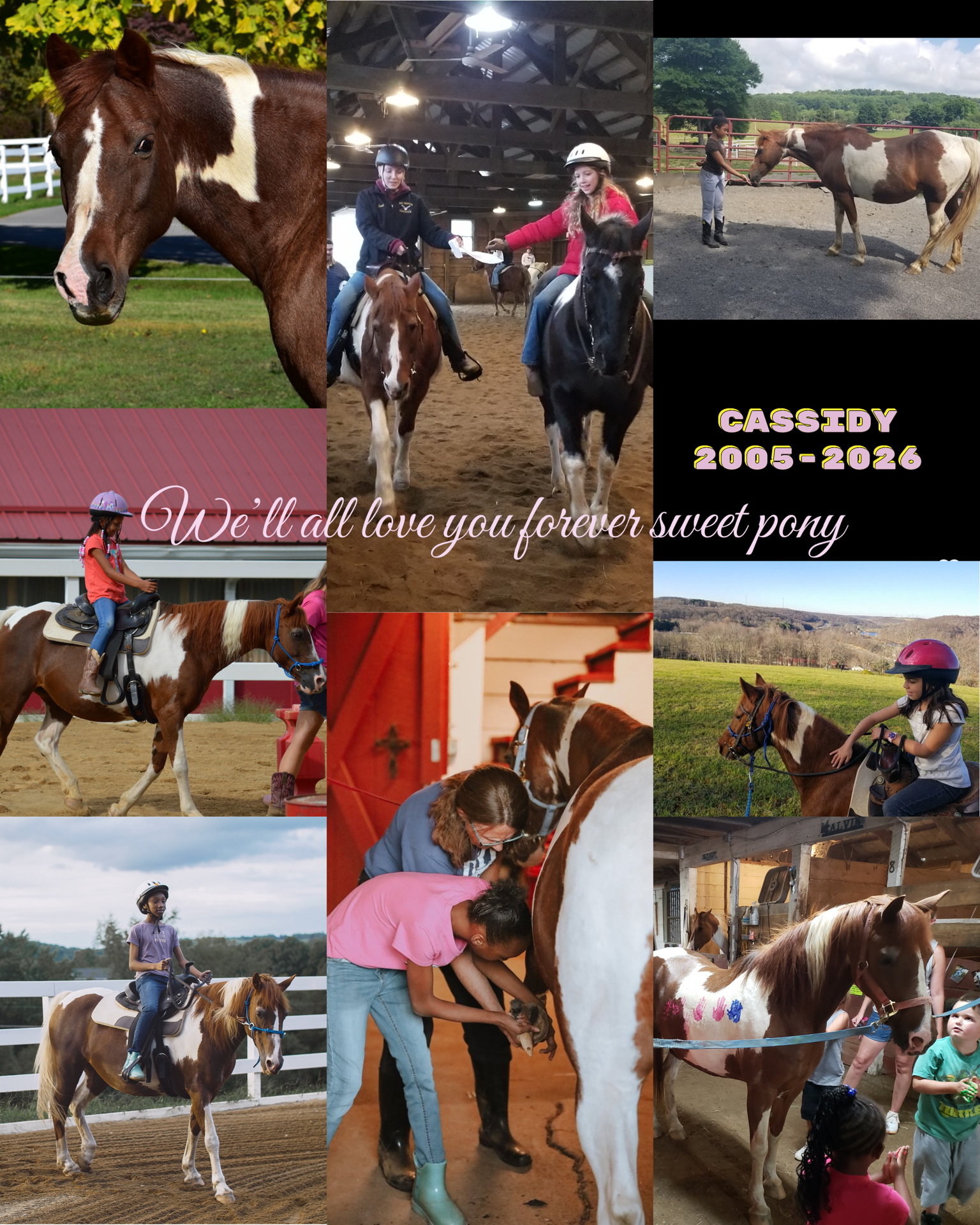 Cassidy knew kids. She knew her job. She helped teach so many how to clean a hoof, groom and tack. The kids loved her. She helped them build confidence. Many were so excited when they could lead Cassidy and she would stay with them. When they took off the lead rope and she would still follow, their pride swelled. Perhaps Cassidy's own self-worth grew as so many called her “my horse.”